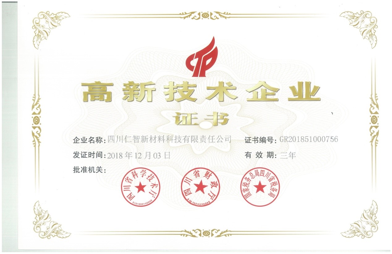 四川仁智新材料科技有限責(zé)任公司通過“高新技術(shù)企業(yè)”認(rèn)定