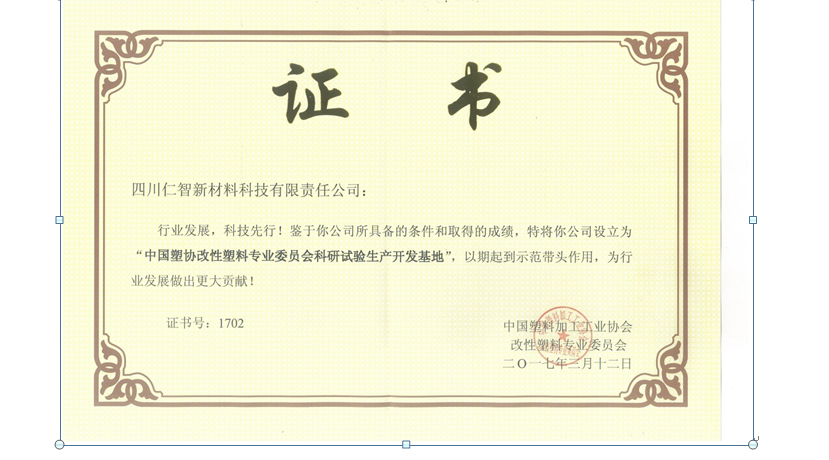 新材料科技公司被設立為“中國塑協改性塑料專業委員會科研試驗生產開發基地”