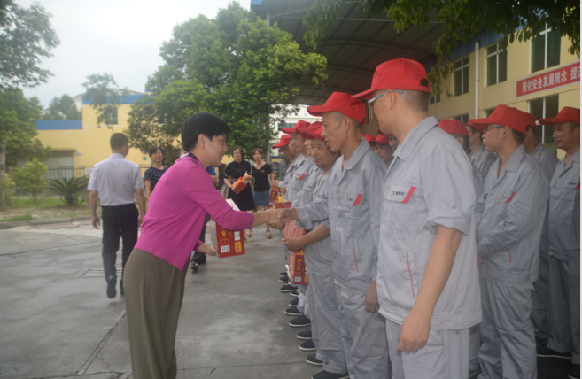 張書記向車間員工表示親切慰問,并與大家親切交談,叮囑大家在工作中一定要注意安全、保護自己;公司工會李主席則叮囑大家在生活和工作中遇到哪些困難,需要哪些幫助及時向工會反映。并親手為每名員工送上咖啡、涼茶等慰問品。
